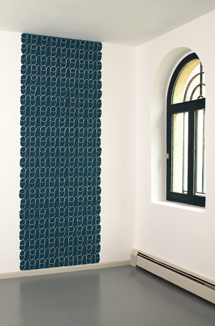 Dispersion auf Wand, drei bemalte Flächen: 2,91 x 1,07 m, 2,91 x 1,13 m, 2,91 x 1,13 m